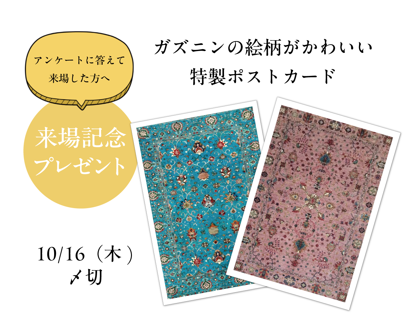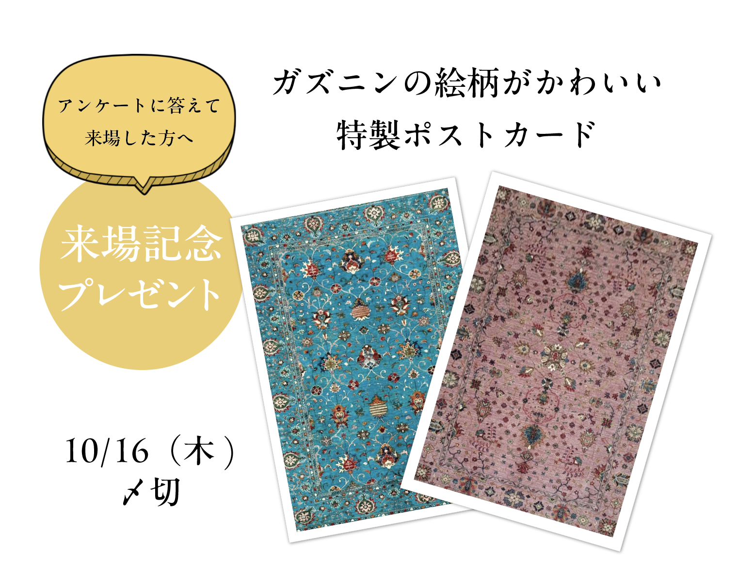 絨毯を迎えるのはタイミングです。気になった時がその時です。この出会いをよき機会としていただきたいと思い、この度の開催記念としてアンケートに答えてご来場いただいたお客様へ「プレゼント」をご用意しました。