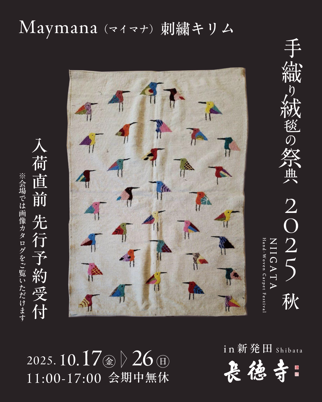 初めましての方もいつもの方も、こんにちは。こちらは、「NIIGATA手織り絨毯の祭典」の公式ホームページです。